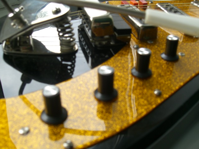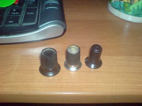 Ручка, которая на снимке посредине, наиболее похожа на те, что стояли на моей гитарке в далёком 77-м. Бридж упростили, чтоб не брякали сухари при игре. А кнопки на П2К есть не только разных размеров, но и формы. Где-то на работе валяются большие с закруглёнными с одной стороны гранями. А также были круглого сечения Д=6-7 мм. На УНЧ "Трембита-101" были такие же, как на Уралах и Аэлитах,- мы меняли. Антабки были пластиковые.