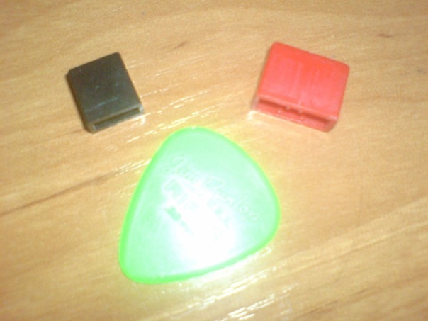 Так, если не забыл, выкладываю. 1. Вот так выглядит антабка из отечественного поезда, как сказал камрад Шок07, они (2 штуки) держат шторки. 2. Вот нашел фото где искать в поезде. Так шо если вы собираетесь ехать в поезде возьмите с собой крестовую отверточку! Как например делаю это. Не хорошо это делать, но зато на гитарах шести есть антабки уже. 3. Дима еще раз спасибо, раз уж достал Тонику, смотри как гармонично вписался новый пластик в окошки! 4-5. Вот он довольно таки кошерный бридж. Очень качествен. 6. Вот для сравнения кнопки. Медиатор - для масштаба. Черная это приборная, Красная с Аэлиты. 7. Крутилки. Они меня вводят в ступор. Вторая и третья - это были на гитаре, первая, та, что пришла мне с пикгардом от Димы.