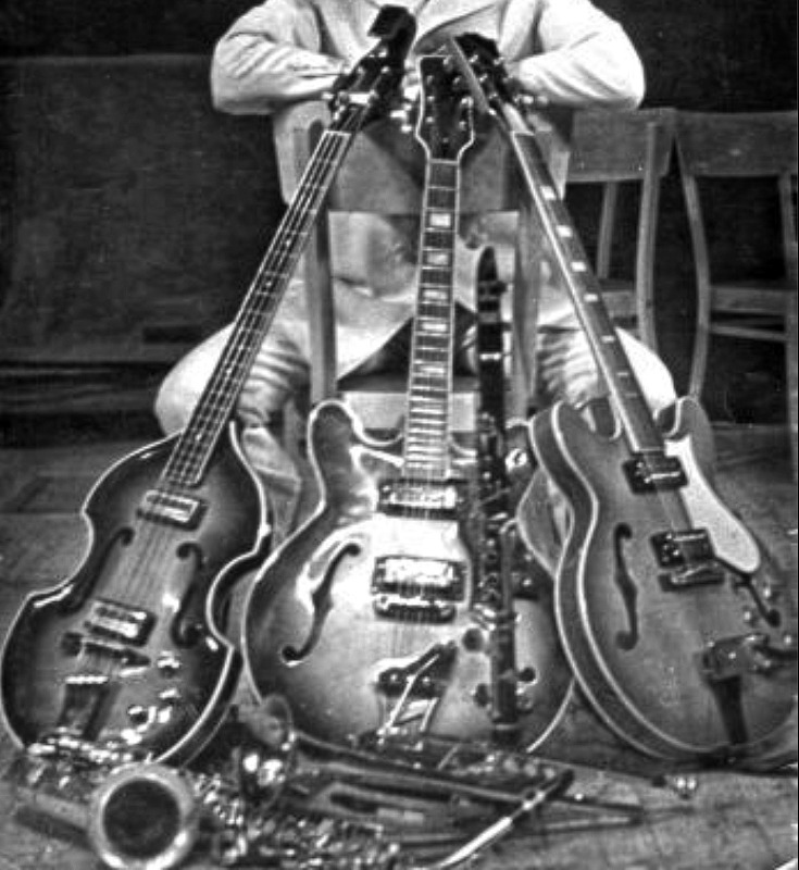 Ещё пример Орфея Тримонциума с "треугольным" расположением ручек потенциометров - в руках Валентина Витебского, ВИА "Весёлые ребята", 1969-1970: [link]