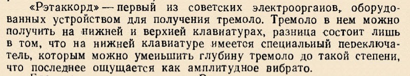 Цитата из поста про эстонский электроорган "Ретакорд" с предыдущей страницы: "...Для получения согласований была организована серия показательных выступлений органа в Москве: в Министерстве культуры СССР – исполнитель Геннадий Подельский; в Государственной консерватории имени П.И. Чайковского – исполнитель Геннадий Подельский; в Павильоне лучших образцов Совнархоза – исполнитель Евгений Фелитиус. Кроме того, внешний вид органа был одобрен двумя художественными советами.