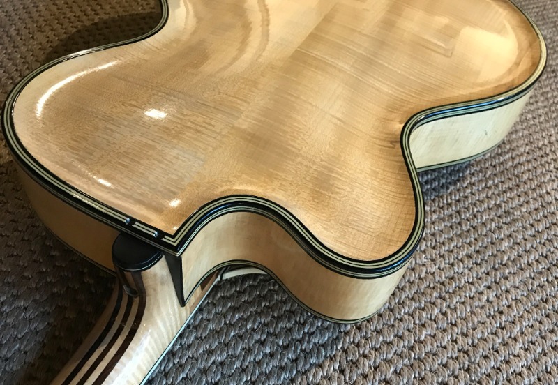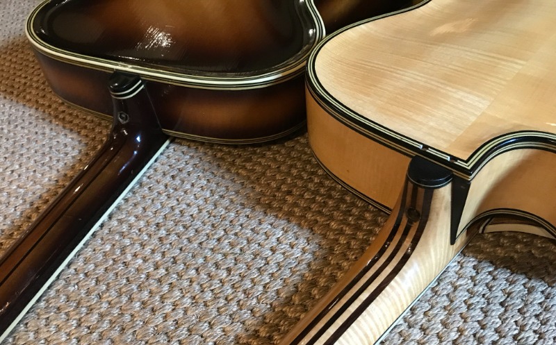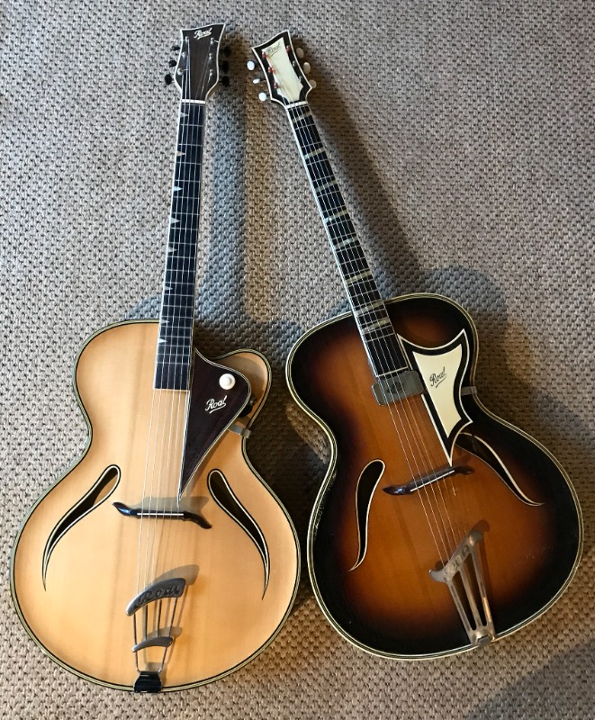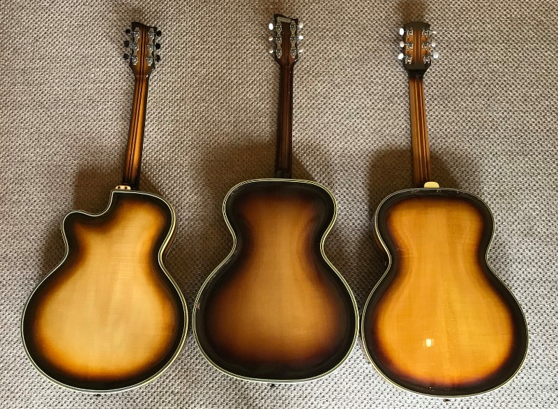 Из более раннего (2019 г.) поста того же автора: [link] ...несколько фотографий моего недавно приобретенного ROAL ...Он сказал одному из своих родственников, что ему нравится гибкость в гитаростроении: «Страдивари создал идеальную скрипку, поэтому нам, современным мастерам, мало что можно добавить». Что меня особенно заинтересовало, так это насколько она похожа на мою гитару Seifert с отделкой «санбёрст» и на мою Glaesel (производитель неизвестен). Я выкладываю фотографии всех трёх гитар, а вот основные размеры. ROAL SEIFERT GLAESEL Общая длина: 165 мм 165 160 Расстояние между струнами у порожка: 35 мм 36 38 на 12-м ладу: 49 мм 46 46 на седле: 54 мм 50 55 Обхват верхней части плеча: 32 см 30,5 32 Ширина бедер: 43 см 43 42 Стороны: 7,2 см 7,2 7,8 Длина F-образного отверстия: 17 см 17,5 22 (измерения включают в себя переплет) Мензура: 64 см 64,2 64