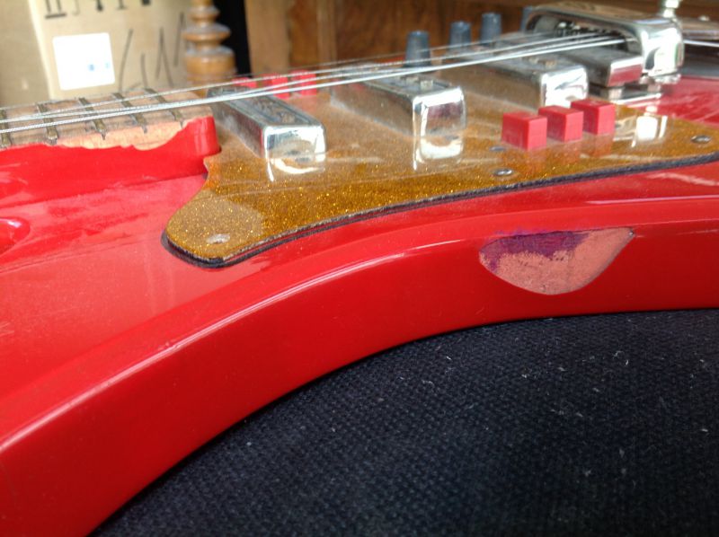 Хм. 1985 год. Никаких экспериментов - вроде бы - на гитарах этих лет в Ростове не было... да и вообще - красная краска на их инструментах вообще не встречалась ни разу, а тут такой шик. Не иначе, по просьбе "хорошего человека" делали.