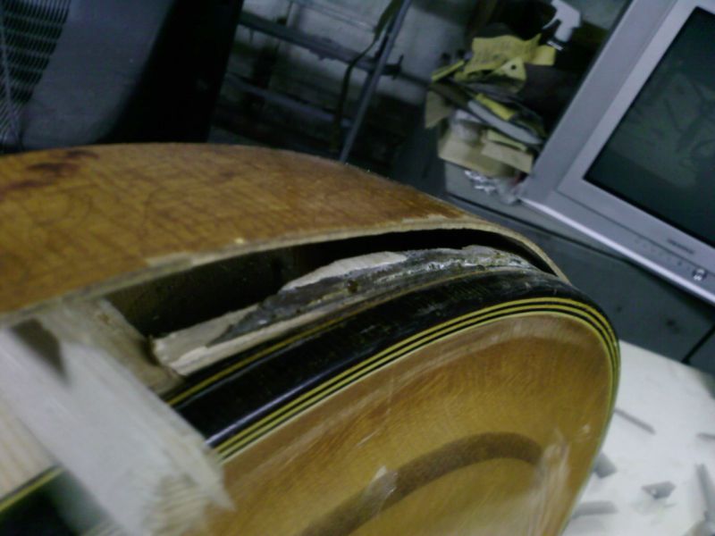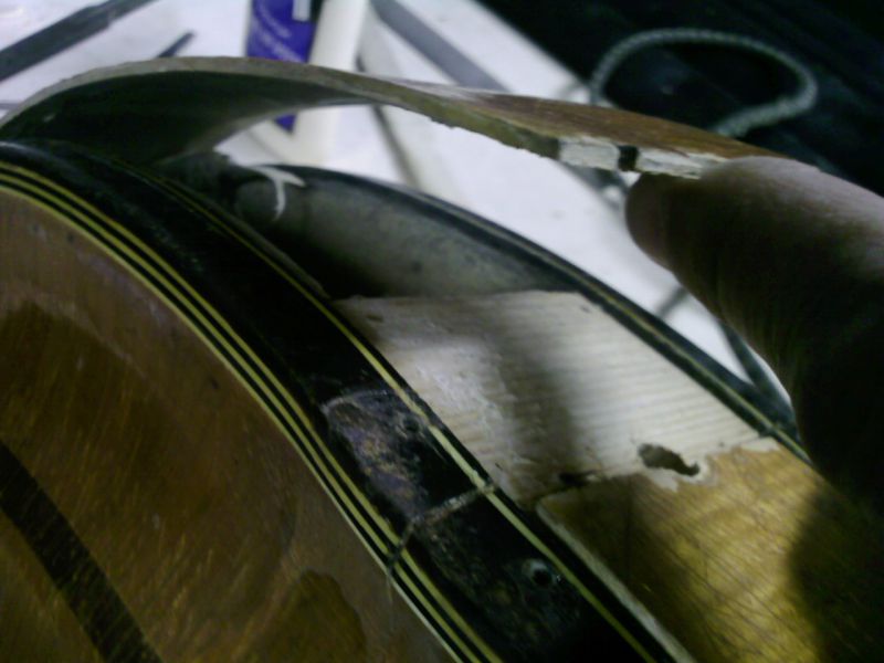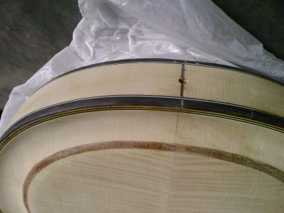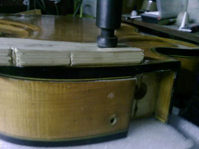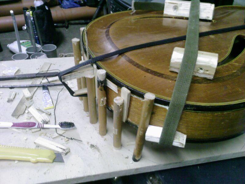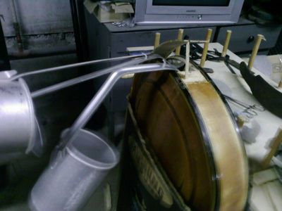 Приклеил деки к клетцу.Со стороны целой контробечайки склеил обечайку.За неимением профприспособлений-подручные.