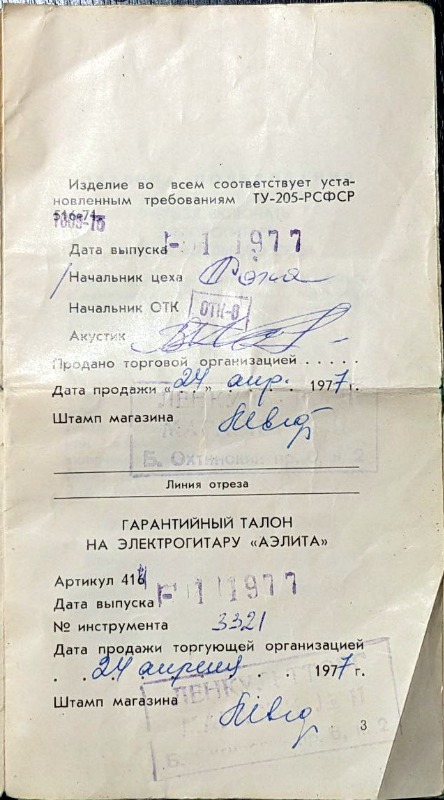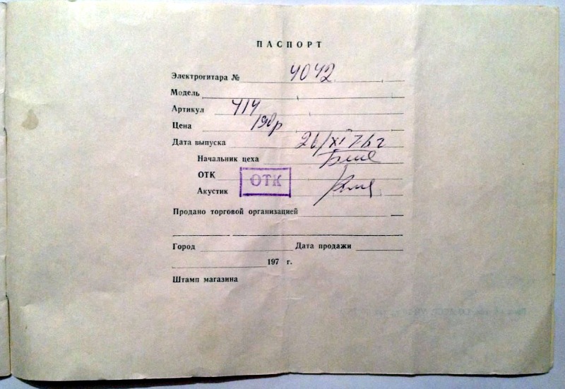 Это весь паспорт. Других страниц в нем нет Ищу Верхнюю часть чехла на Jolana Kolor/Rubin Bas.В идеале-синего цвета,крышку ЛЕЛЬ ДД(красную), октавер ЛЕЛЬ ,а также педали 180-ой серии ЛЕЛЬ.