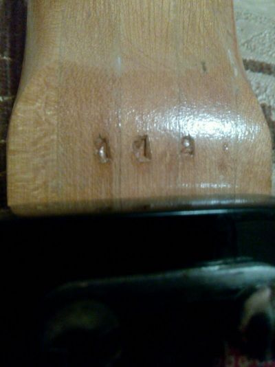 После снятия лака проступила надпись, то есть выходит, что надпись под лак делали, а не наоборот? На пятке номера нет, но судя по колкам на планке Элгава ранняя.