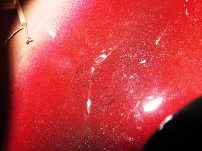 Если краска из гаража, где 20 лет замерзала и размораживалась, то не факт, что ей ещё покрасить удасться. В любом случае, разболтать и отфильтровать через двое чулок. И да, на грифе красный цвет только в середине задней части. Остальное - чёрный. Деку лучше не трогать. Japanese-Manufacturers-of-Made-In-Japan-from-1950-to-1980