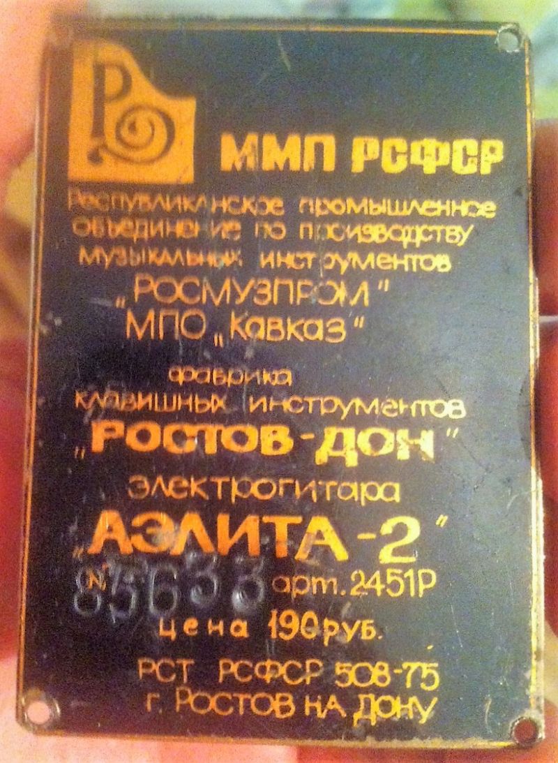 ID пользователя #4175 Зарегистрирован: 18.10.2013, 19:25 Местонахождение: Москва, Подрезково Сообщений: 5153TrDima Цитата ... гитара Аэлита-2 85633 бас-гитара Кремона джибсон на пятке грифа 932 !