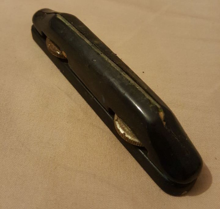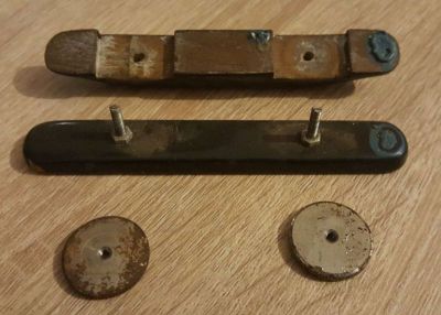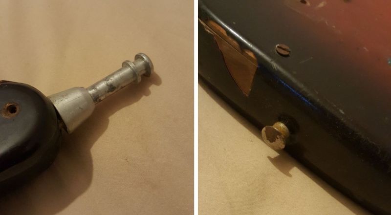 Стандартный струнозацеп-крышка, поломанная ручка галетника с металлической основой и фиксирующим винтом.