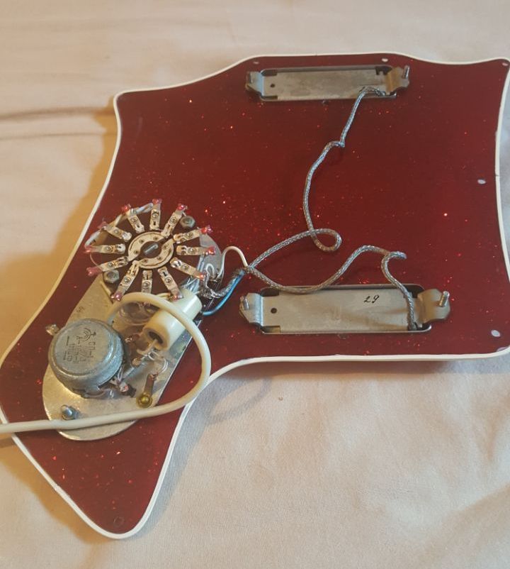 Гитара практически полностью комплектна, за исключением перлоида на голове и ручки потенциометра. Пикгард заклеен бумагой. Видимо для того чтобы искристый пластик не сильно бликовал, в лучах сотен софитов, в линзы телекамер со всего мира. На финале фестиваля в Сопоте.
