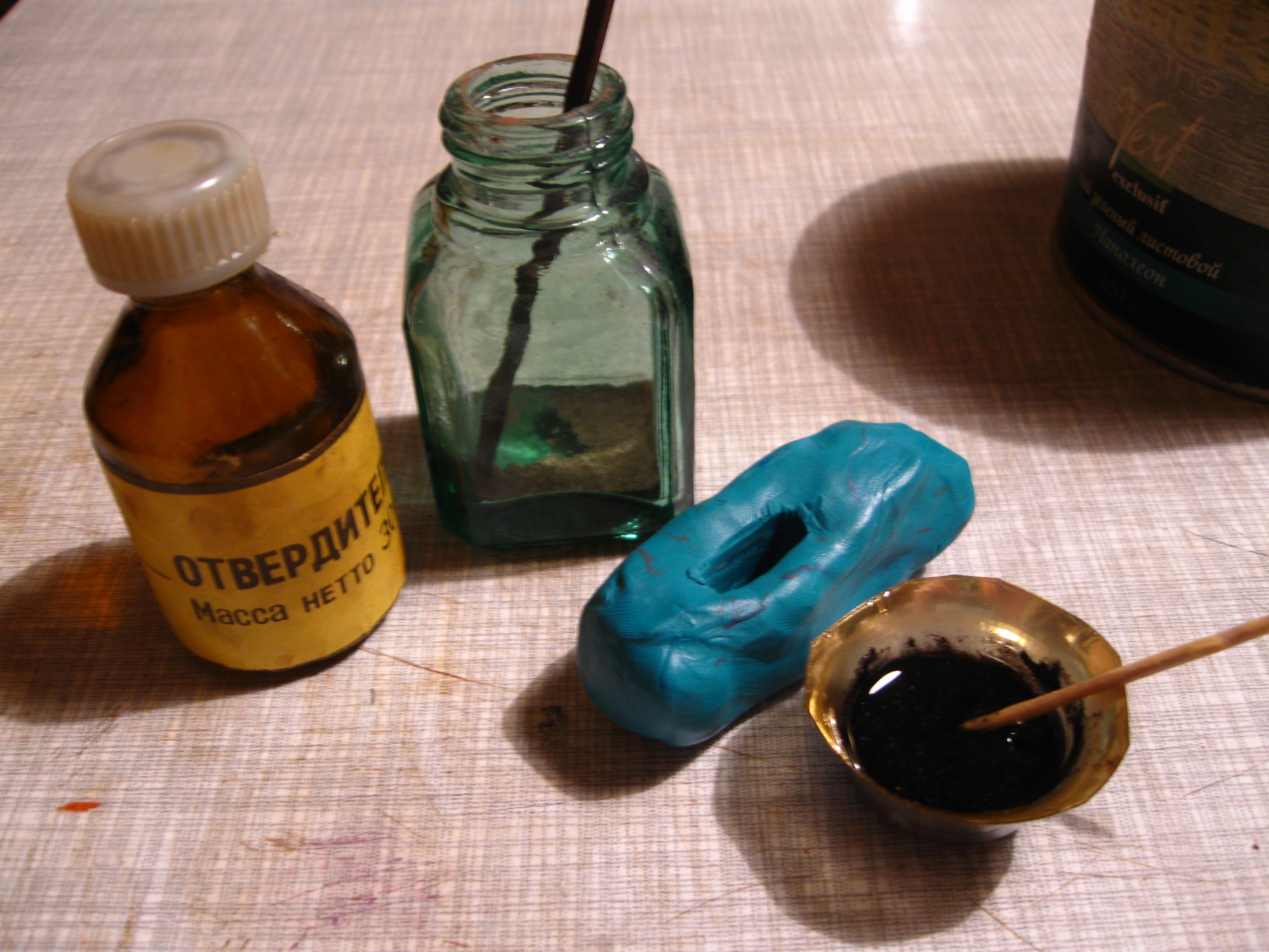 Не забываем, ещё надо сделать 3 лопасти. Раньше я так не заморачивалась, эт у меня своеобразный первый блин. Сделала слепок в пластилин, заморозила, налила эпоксы с каким-то чёрным наполнителем - кажется, это были эбеновая пыль и сигаретный пепел.