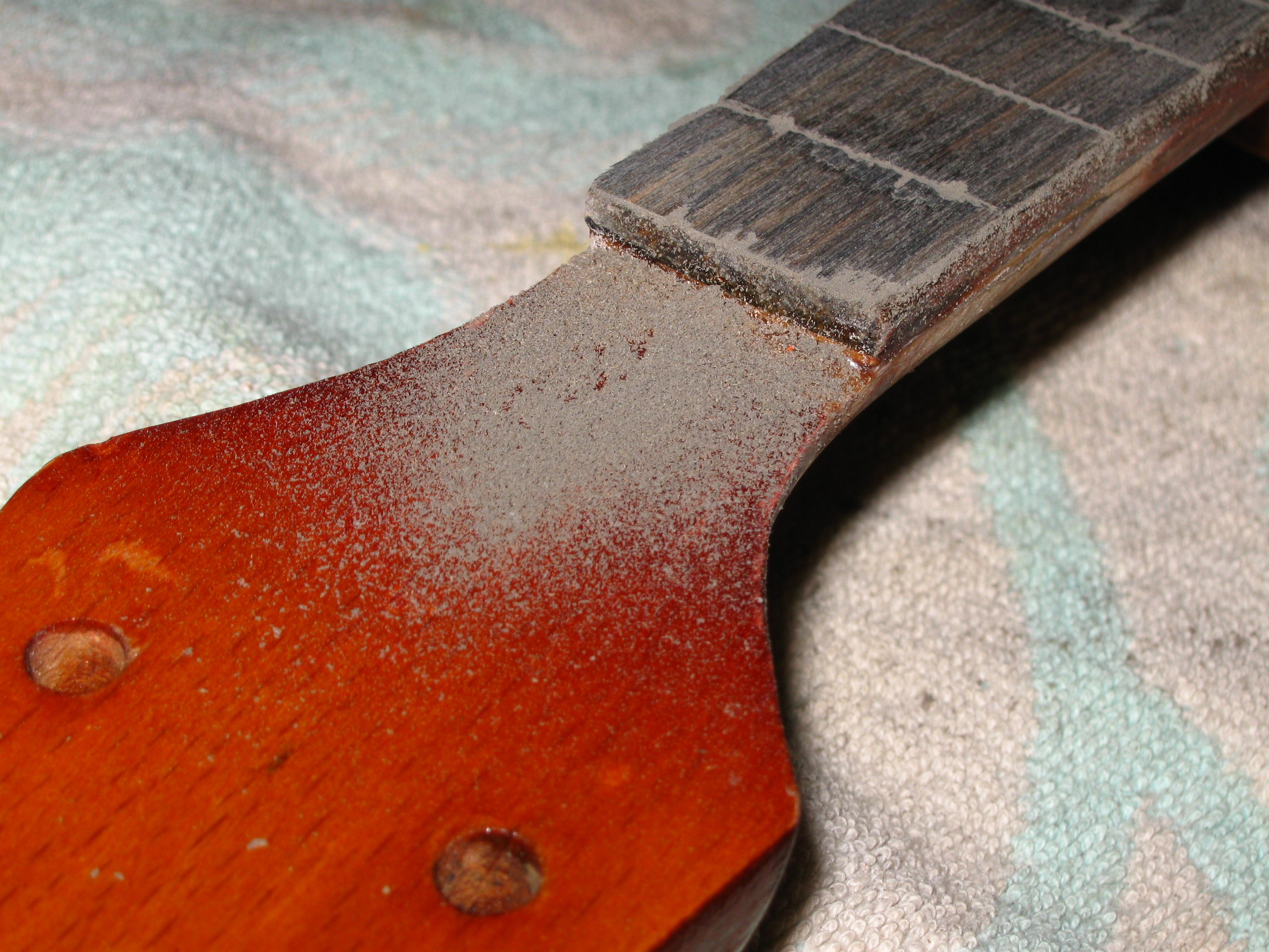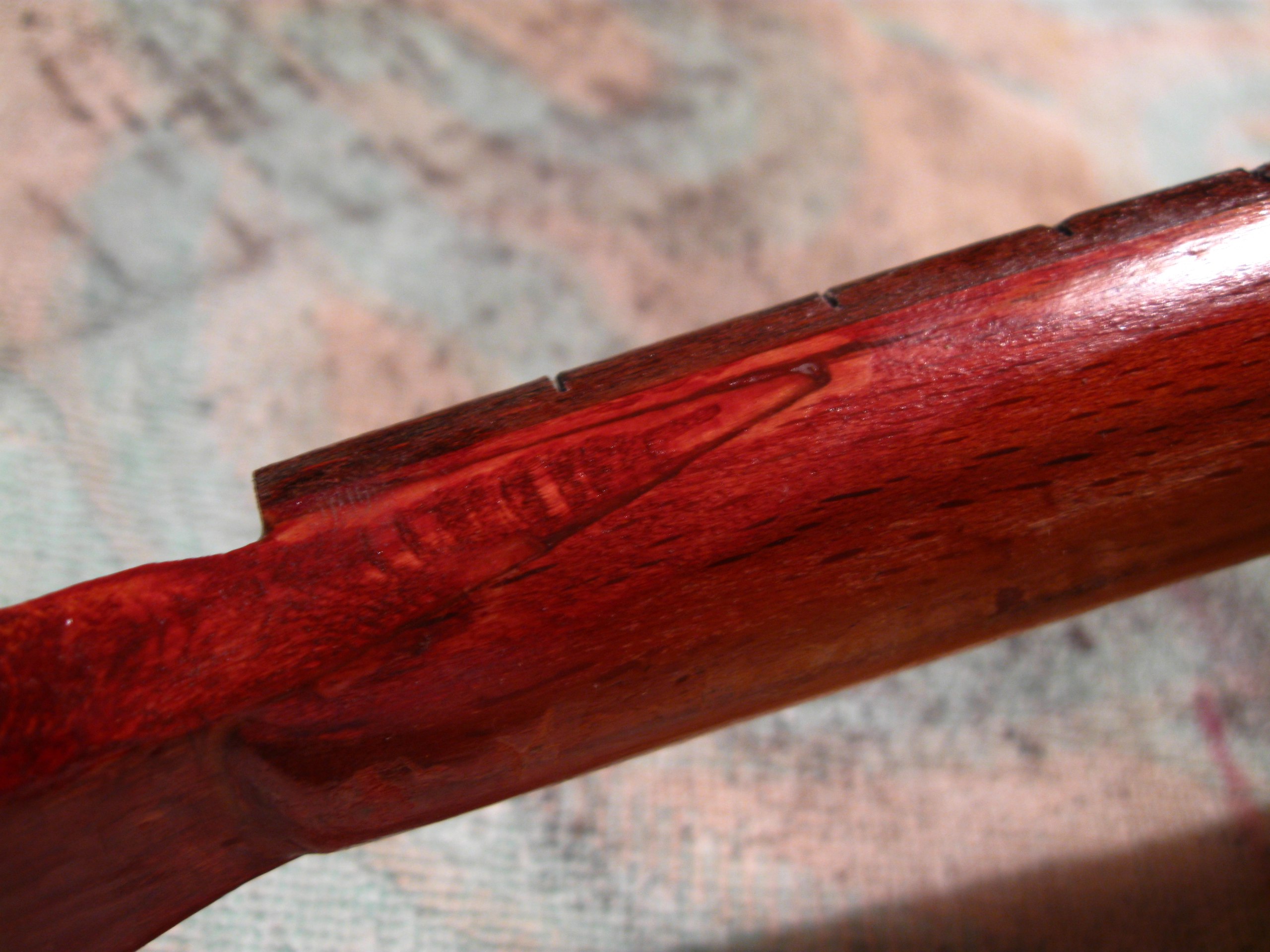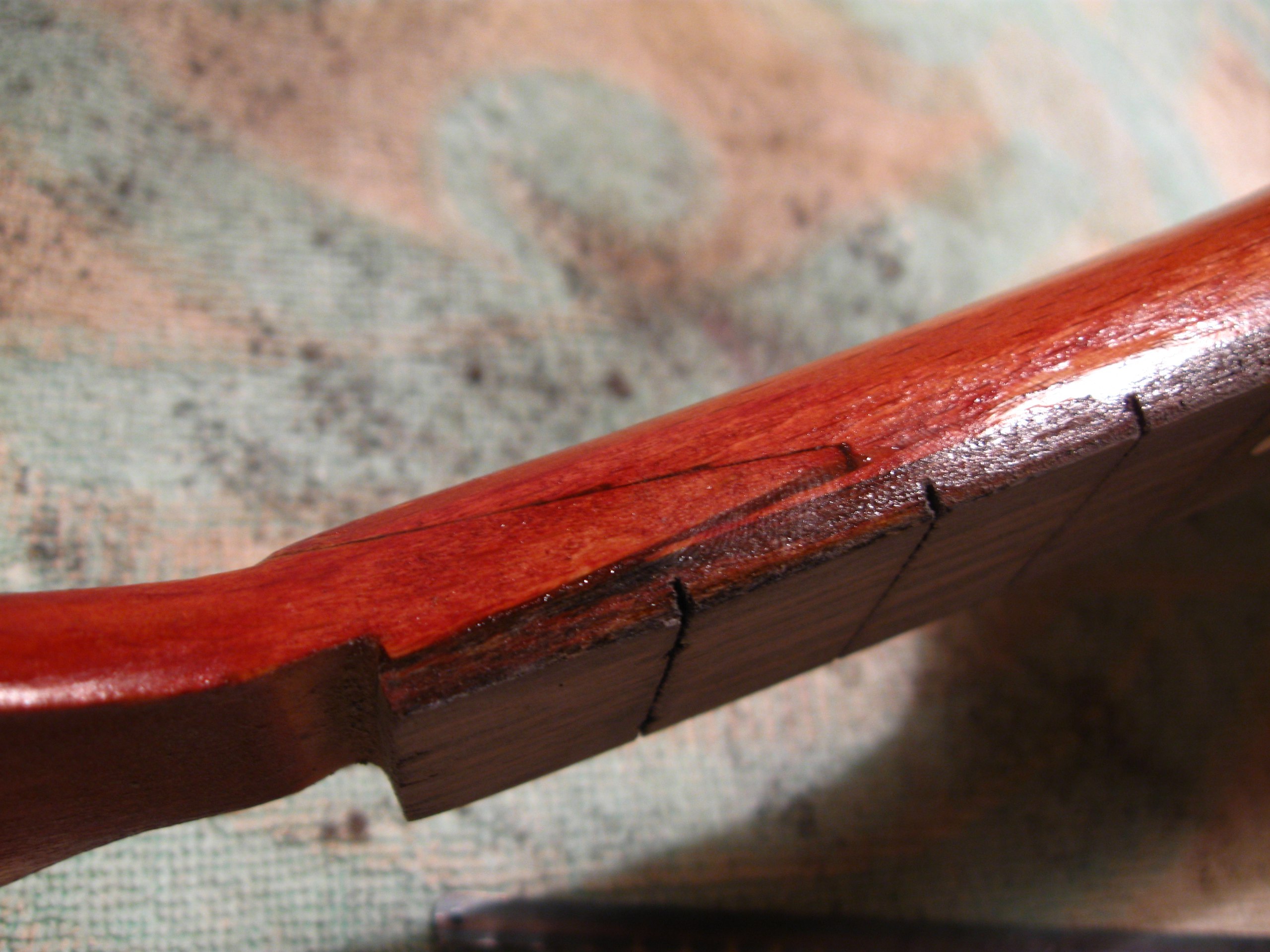 Вот типа того. Это самый жестяк, в остальных местах практически не видно. Тут 2 мелких куска падука. в остальных местах - падуковая пыль на супер. И наждачкой, ручками, ручками.