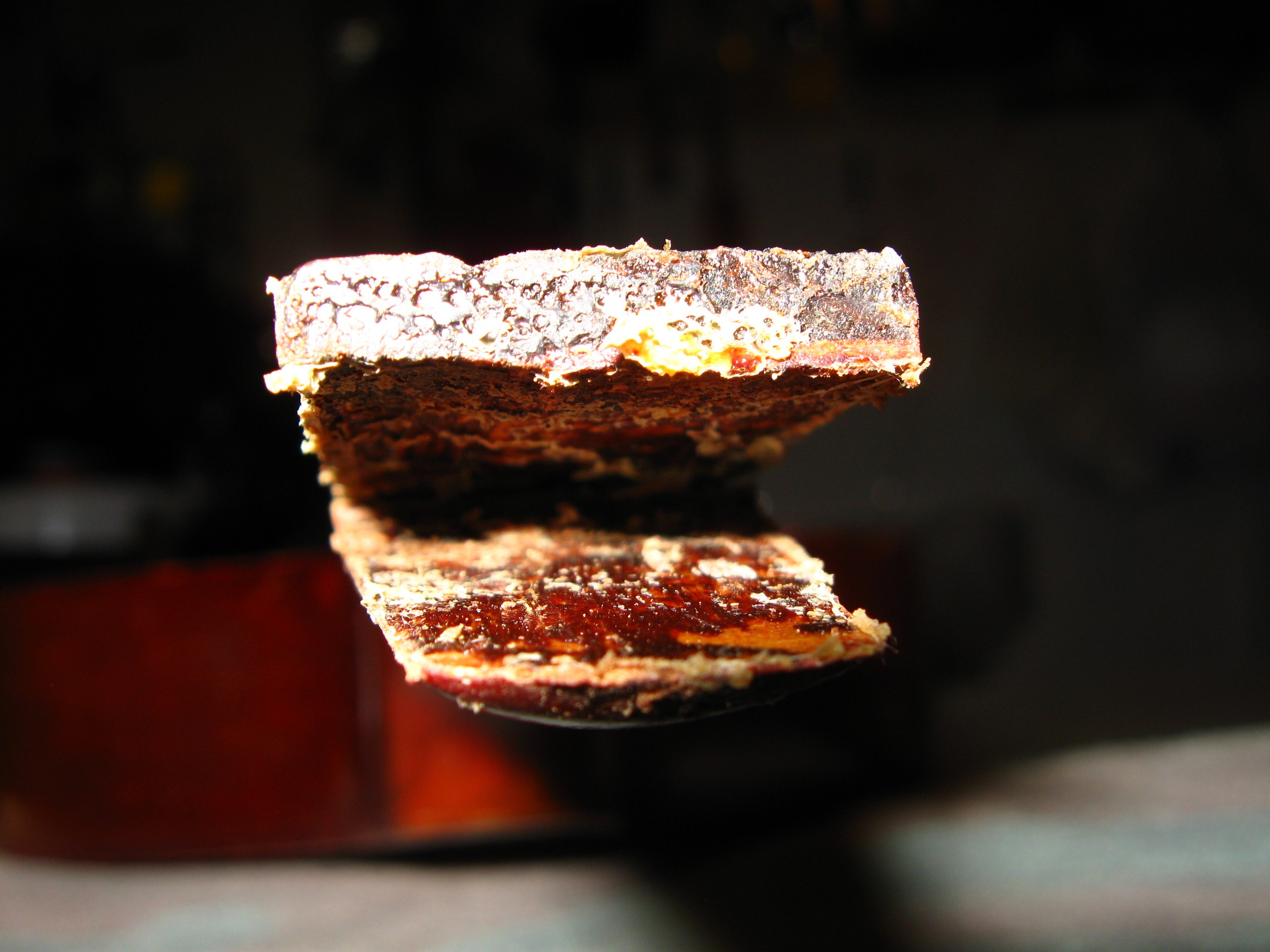 Нижняя дека практически наполовину отошла от обечаек, судя по всему вследствие удара. И разумеется, классика жанра "идиот-хоррор" - момент и снаружи, и внутри. Давайте я не буду рассказывать, как перебирала этот двигатель через выхлопнуху.