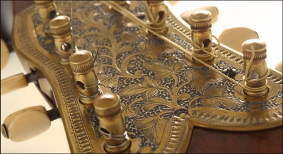 Планки, украшенные резьбой по металлу, видны на гитаре Циммермана 1923 г., Лейпциг: