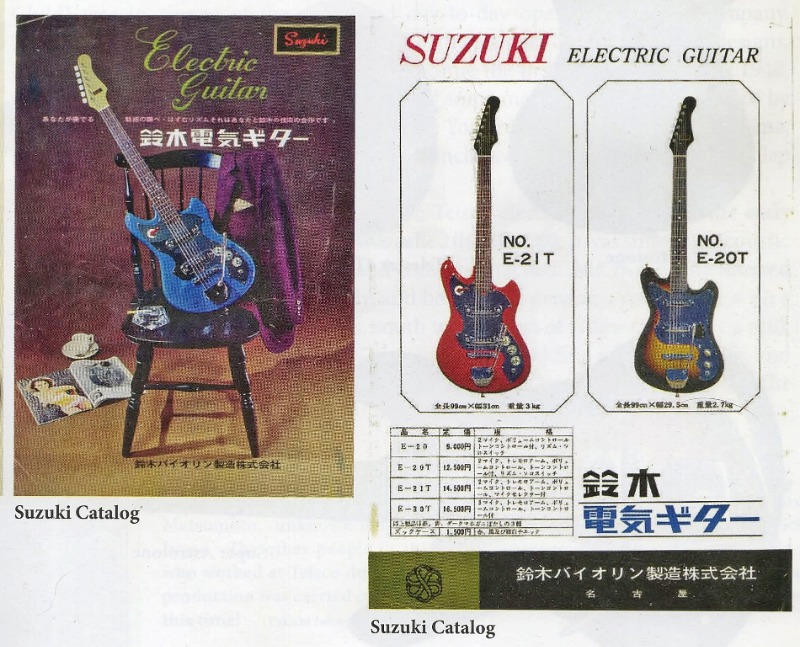 Более дешевая Suzuki Е20(Т) - с клавишными переключателями и характерным "зубом" пикгарда от потенциометров в сторону струнозацепа, отмеченным ранее у Tele-Star'ов: