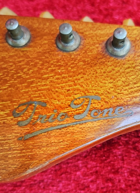 Аналогичное изделие с 3-мя звукоснимателями, и табличка на голове грифа сделана в том же стиле с тем же красным шрифтом, - только вот написано на ней не "Tele-star", а "Melody plus", - модель RD3V: