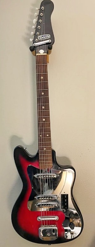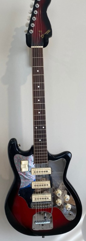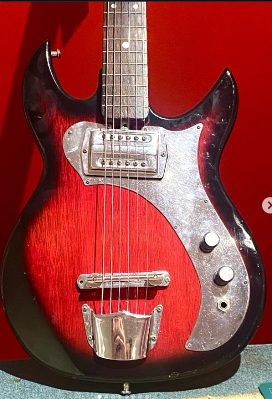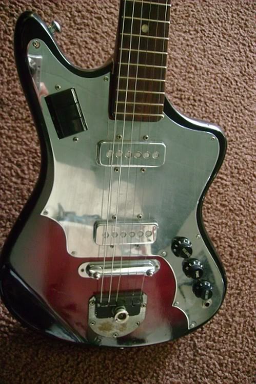 Тюльпанокорпусная DECCA с металлическим пикгардом, вдохновлённая образцами от TEISCO (вопреки слухам, фирма TEISCO не выпускала гитары Decca): [link]