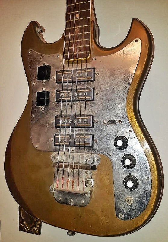 Впрочем, вышеупомянутый пикгард с выступом виден на бас-гитаре Guyatone модели EB-4: