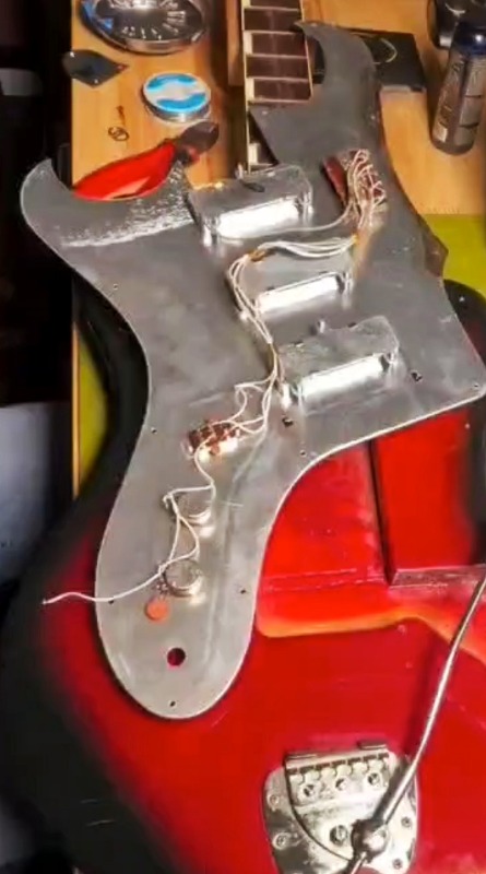 Металлические пикгарды имели место также и на японских гитарах, обозначенных скорее негитарными именами - такими как IDEAL: "Ideal" с 4-мя звукоснимателями: