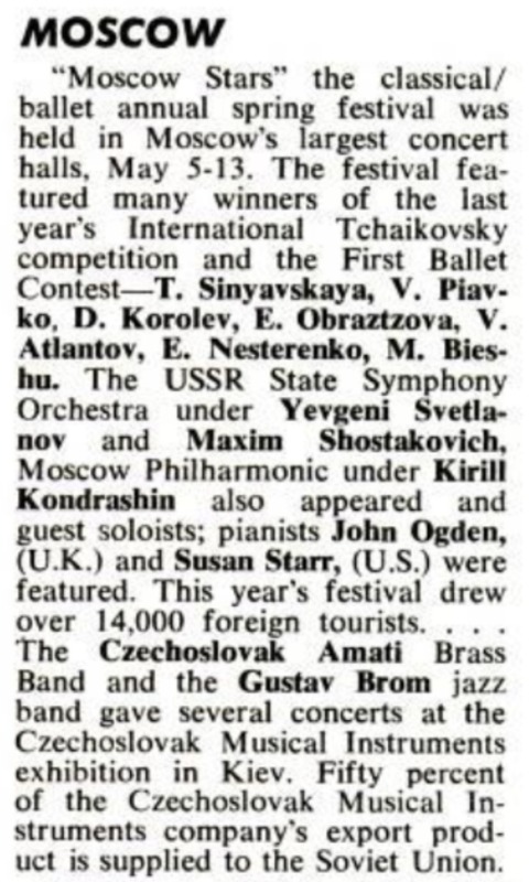 По данным из заметки в журнале Billboard от 5 июня 1971, с. 50 [link], процитированным Википедией, "50% экспортной продукции музыкальных инструментов поставлялось в Советский Союз"