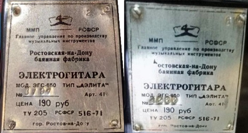 В целях более точной датировки выпуска ЭГ "Аэлита" на баянной фабрике, выкладываю аналогичную информацию по другим инструментов этого производителя. Поддерживаю мнение об общей сквозной нумерации всех выпускаемых гитар на данной фабрике. Мое мнение основывается на сопоставлении серийных номеров с применяемыми общими материалами и комплектующими, дизайне отдельных элементов, изменениях в названиях выпускаемых моделей. В условия строгой плановой экономики советского периода указанные изменения вносились практически одновременно во все модели. Если модераторы полагают размещение данного поста в этой теме неуместным, просьба проинформировать меня для его переноса в актуальную тему.