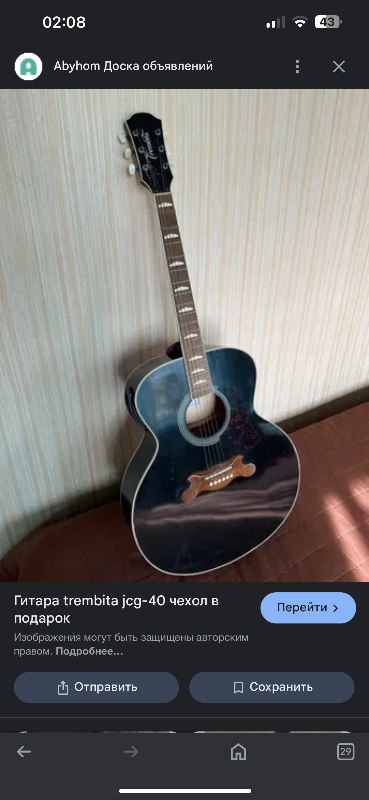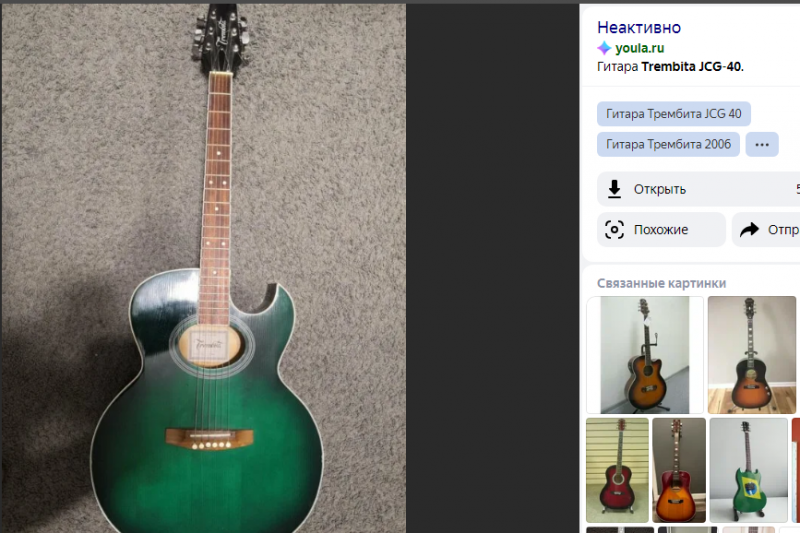 Не могу согласиться. Смотрим..... вверху мои фото, а ниже с тырнета (я списывался с продавцом и узнавал подробности.) Гитары обе идентичные (JCG-40), с единственной разницей - отверстие! Гитара 2001 года (это не моя) - уже овальное! И более поздние года - овал. Этикетки и логотип одинаковые. И там и там .... Модель - 40. У меня эта цифра еле - еле заметна (выцвела) но различима. А вот штампик года - у меня ваще не разобрать. ............... Сравнил размеры. У меня Дредноут Oscar Schmidt by Washburn OG2CE. У Трембиты такой же громадный корпус. (51 Х 41 Х 11).