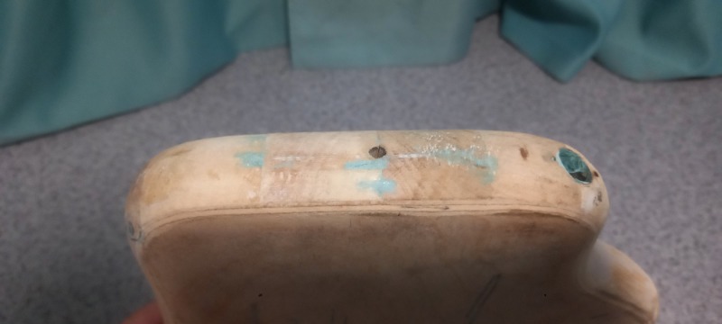Вот у меня прям под рукой есть пара ободранных от краски, на которых всё видно. К сожалению, эти уже зашпаклёваны (синие пятна видны) но дома вроде есть пара просто шлифованых. Пришлю если не забуду.