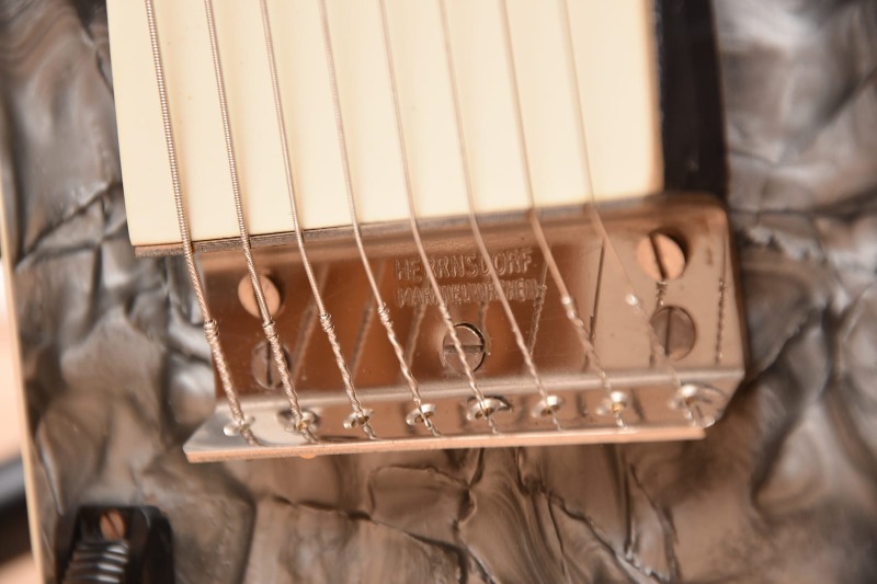 | За звукосниматель сложно чем-то порадовать, - вот разве в области струнозацепа бывала и такая вот пропечатанная в металле аутентичность: [link]