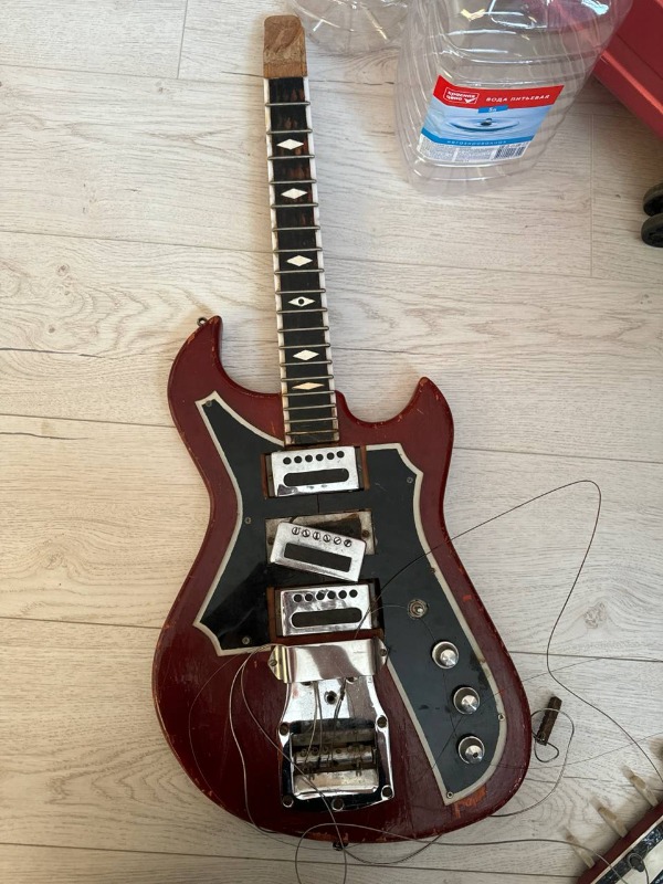 | Если у шпилек бриджа резьба М3, то скорее всего использовались комплектующие ранней Свердловской "Тоники". Если М4, то Ростов. Есть какие либо надписи на звукоснимателях?