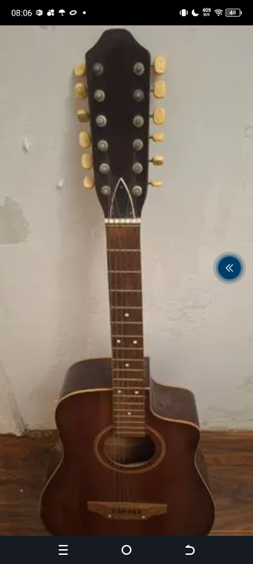| ID пользователя #22373Зарегистрирован: 30.03.2026, 22:29 Местонахождение: Москва Сообщений: 2 | Будучи студентом в 90-х годах у меня была 12-ти струнка. Память, увы не сохранила, ни обстоятельства покупки, ни собственно что это была за гитара. Вряд ли у меня были тогда средства на что-то дорогое. Да и связей, достать чтото интересное не было. Сохранилось фото, но самостоятельно определить мне не удалось. Может знатоки поможете. Судя по всему у нее был анкер и весьма характерный бридж. С фрезеровкой лунки под каждую пару струн. По крайней мере, я такой больше нигде не видел