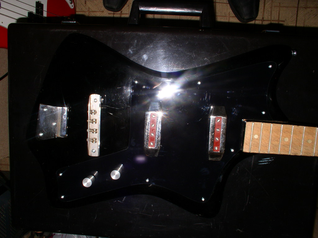 вот сегодня сделал новый пикгард из чорного рекламного акрила 3мм датчик ХАМБАКЕР )))) был заменён на два сингла за неимением лишних оригинальных датчиков --- установлены какие были вот два фото - с примеркой бриджев других пока нет хотя заказал копии оригинальных бриджев из нержа крутилки алюминий от какого то одисея (оригинальная всего одна) что скажете