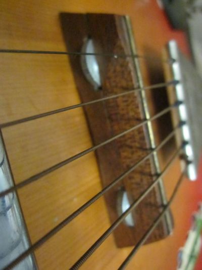 Здравствуйте все! выменял сегодня подобную гитару, вариант с полными эфами, полное отсутствие намека на электронику, 6 струн но дополнительные отверстия под 7ой колок имеются , состояние всего дряхлое но бодрое, верхняя дека светится щелями и место склейки башки к грифу не внушает доверия ну а по мелочи что лады съеденные, кант побит местами ипр и говорить нечего! надо все восстанавливать но не знаю с чего начать, у меня главный первый вопрос ! я хочу из этого барахла вариант электро-7 , насколько отвратительным и глумливым по вашему будет пионерия с прорезанием дыры под темброблок и джек , и впиндюривание 7ого колка , второй вопрос чем отклеить намертво приваренный нижний, нерегулируемыый ни-как примитивный порожек-бридж?...его надо главным образом по мензуре двигать а то бы и не трогал!... третий вопрос это зацеп, у него между дырками под первую и шестую струны спереди какой-то странный вырез и струны были прикреплены за металлическую палочку которая просто вкладывалась под загиб зацепа и струны все кроме первой и шестой привязывались к этой палочке...я такого не видел пока на фотках аналогичных гитар гитар, для пионерии как-то слишком сложно и бессмысленно было бы прорезать так ювелирно железную пластину... Вас из Даст?...