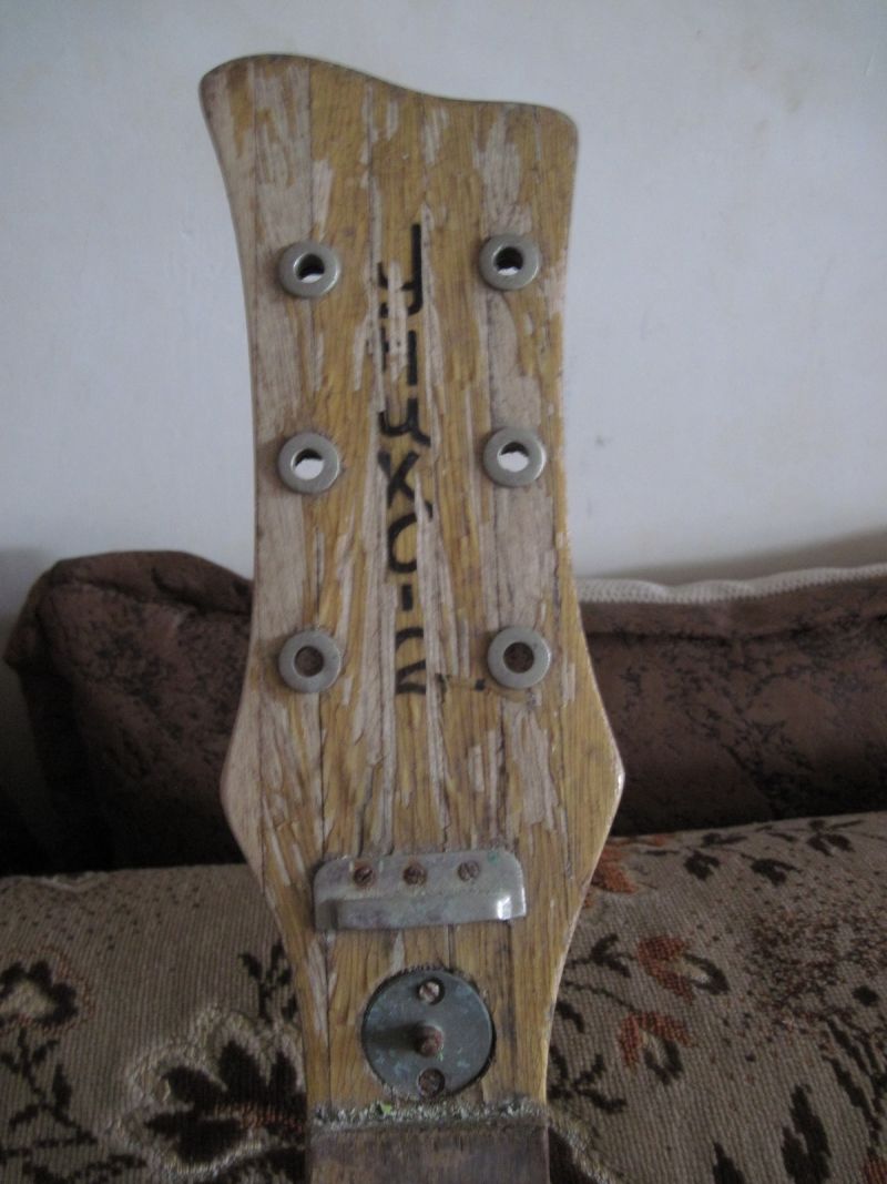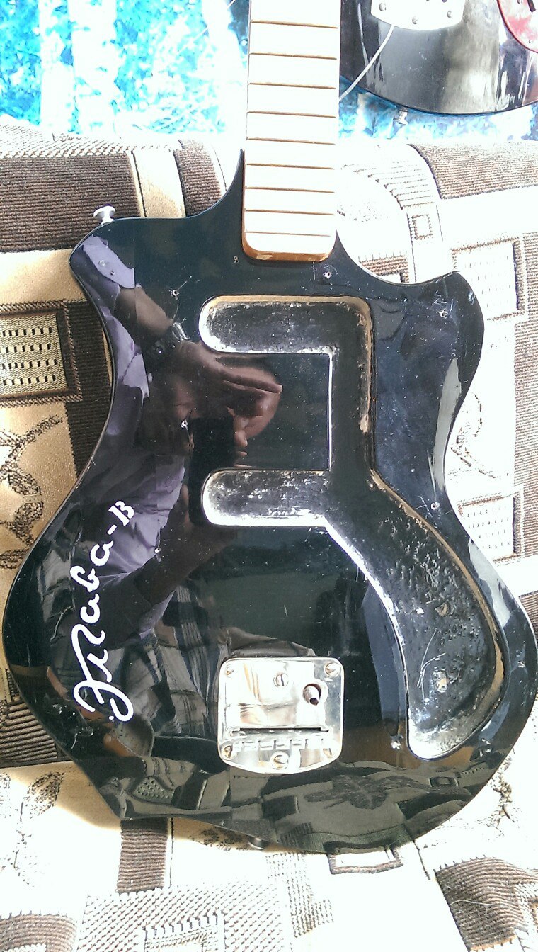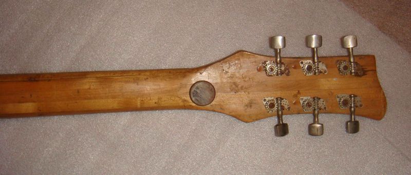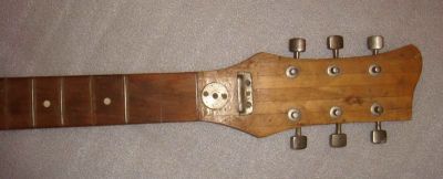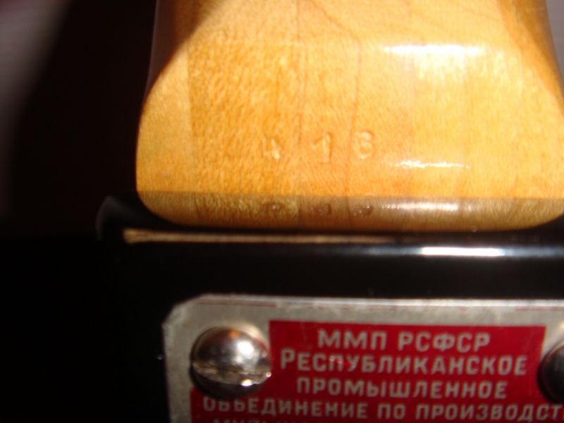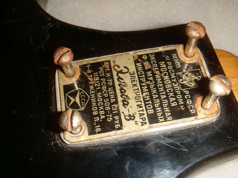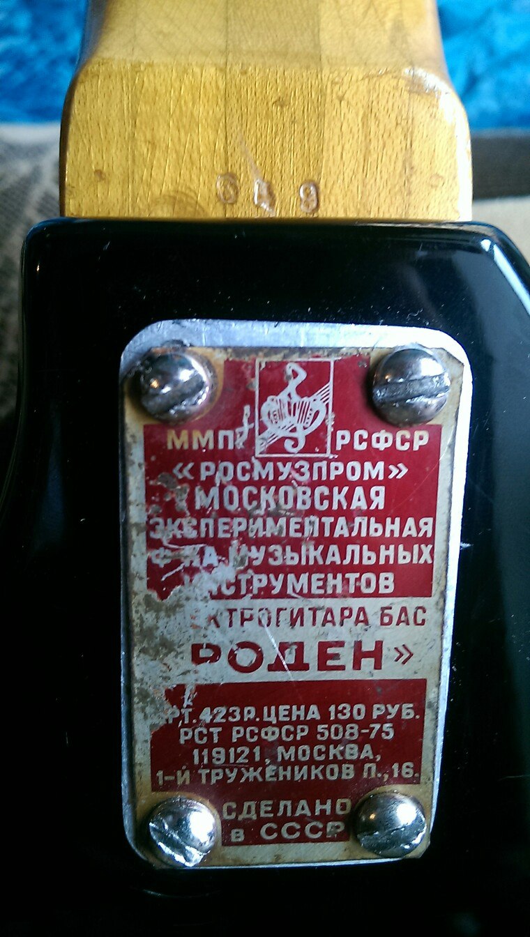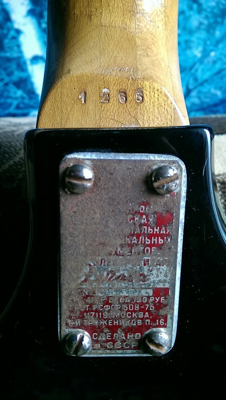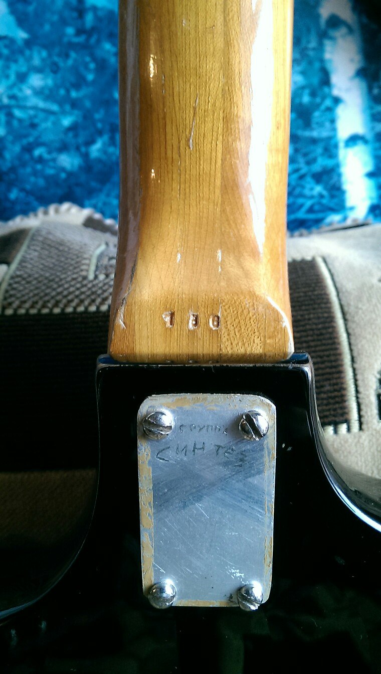 На грифе выбито 130 р-цена.Афтограф сборщика или контролера."Датчик за 9" в неке на интересной фишке стои-чтоб ближе к струнам быть.Датчики прикручены чере полистиро к деке.на пот-ах "очередные" март-апрель 74
