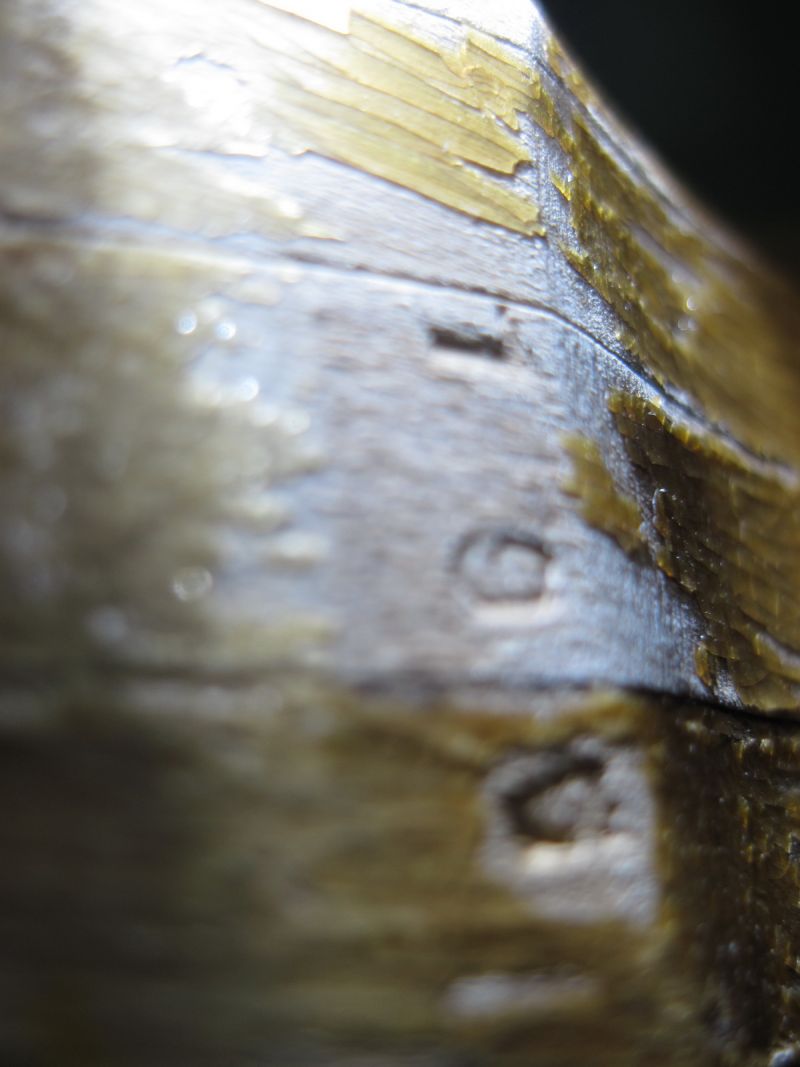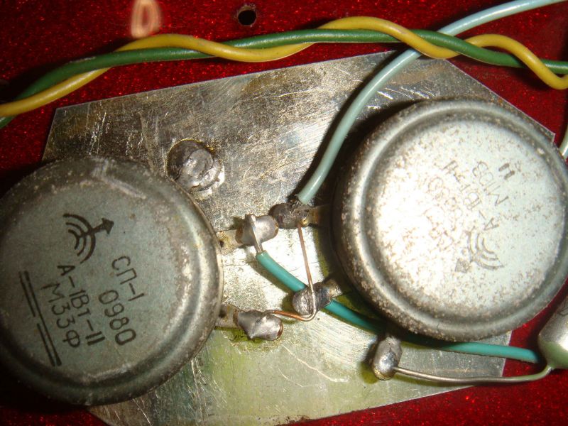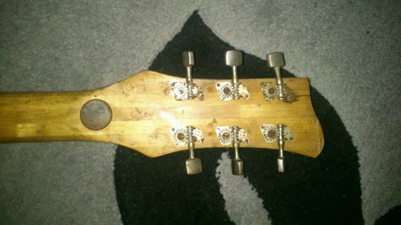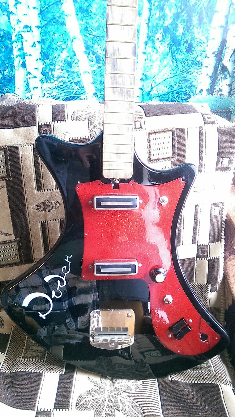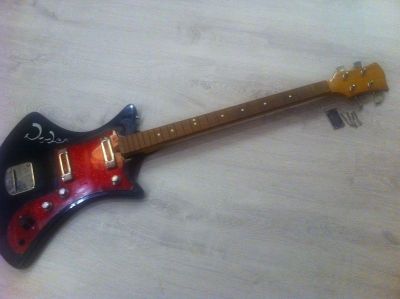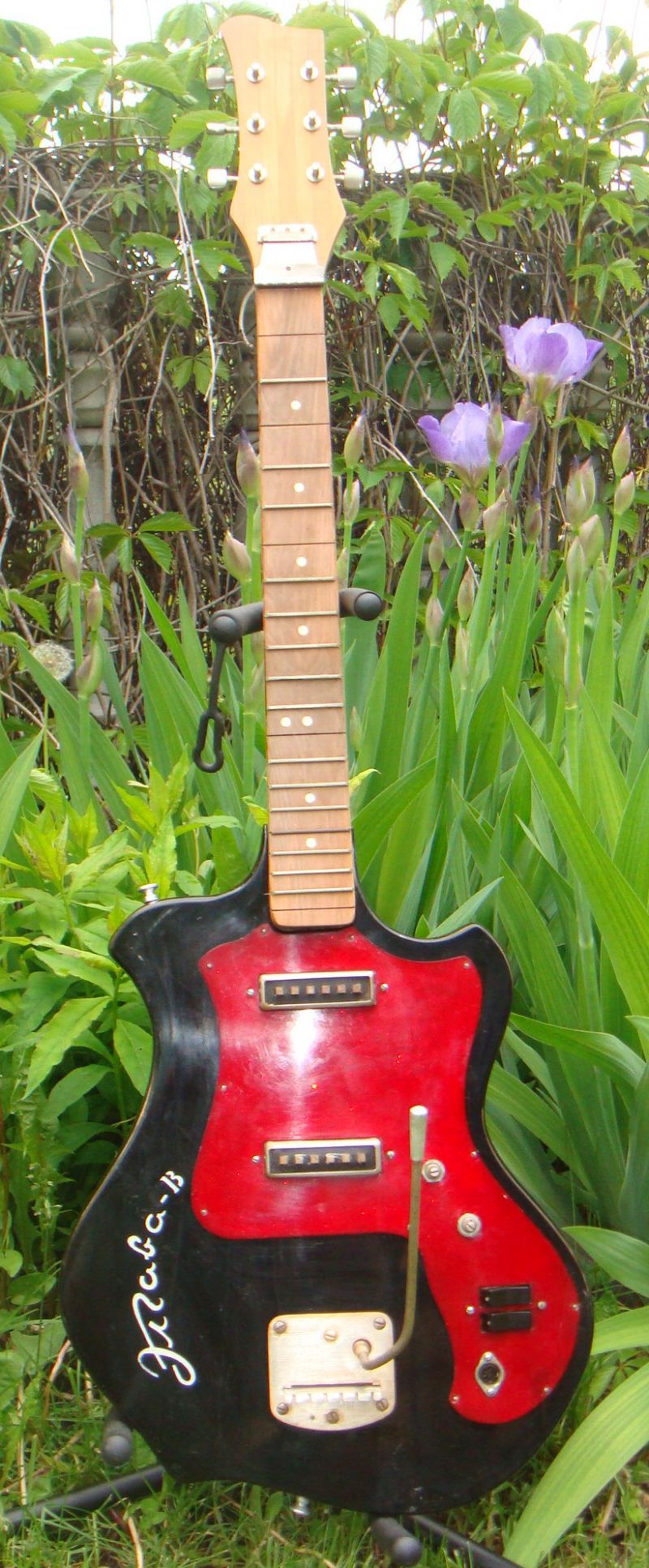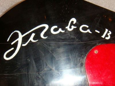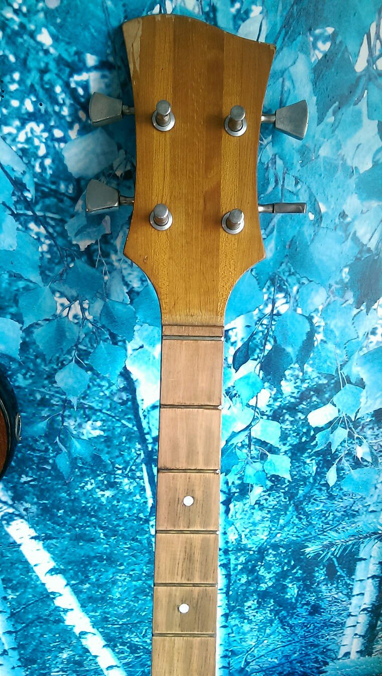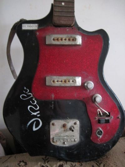 На грифе выбито 130 р-цена.Афтограф сборщика или контролера."Датчик за 9" в неке на интересной фишке стои-чтоб ближе к струнам быть.Датчики прикручены чере полистиро к деке.на пот-ах "очередные" март-апрель 74