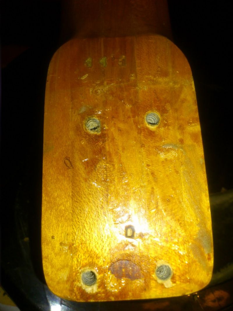 Впервые вижу на Элгаве такой некплейт. При этом, отсутствие лишних дыр в пятке грифа и цена, выбитая на грифе, говорят за то, что некплейт родной. Что скажете?