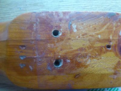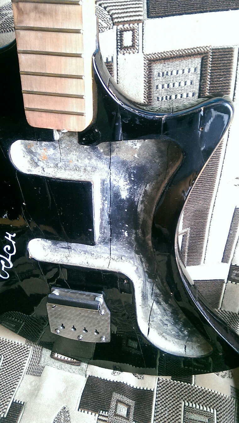 Я не полиэфирные корпуса имел в виду... Речь шла о свежекрашенных пикгардах, которые порой практически "лепили" на полиэфирные корпуса. Это касается практически всех Советских гитар с такого рода пикгардами. Пикгарды из перлоида конечно такого следа не могли оставить.