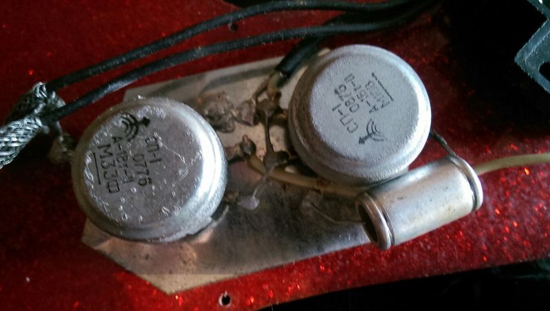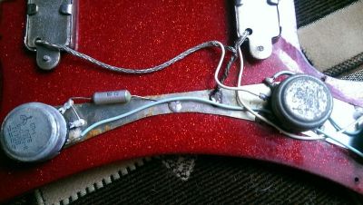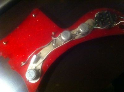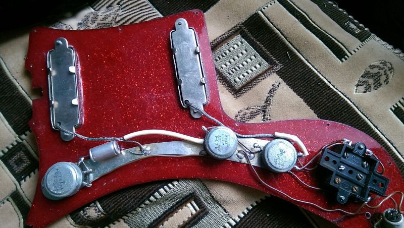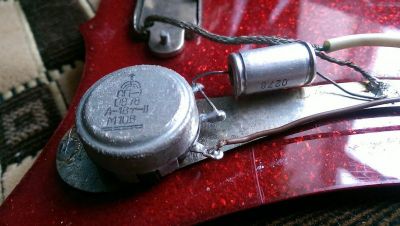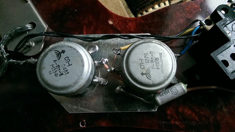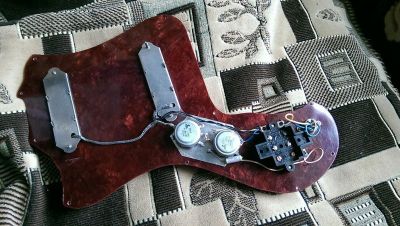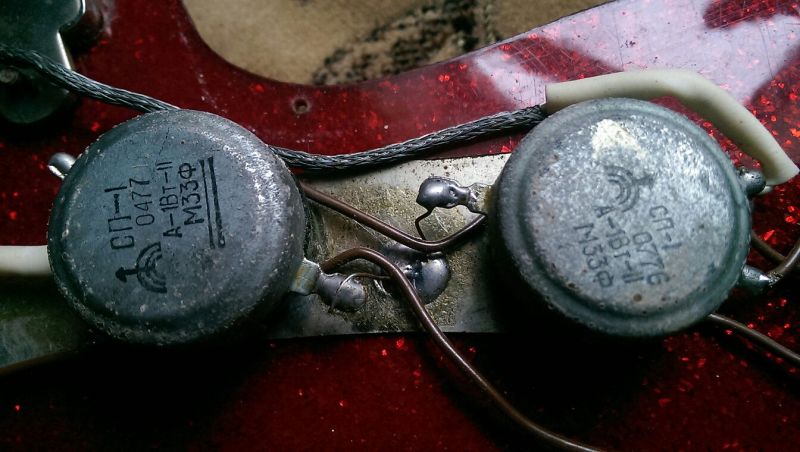 Я ведь чуть выше написал, что пикгард самопальный, а часть элементов схемы левая. Таким же левым образом и звукосниматели поставили.