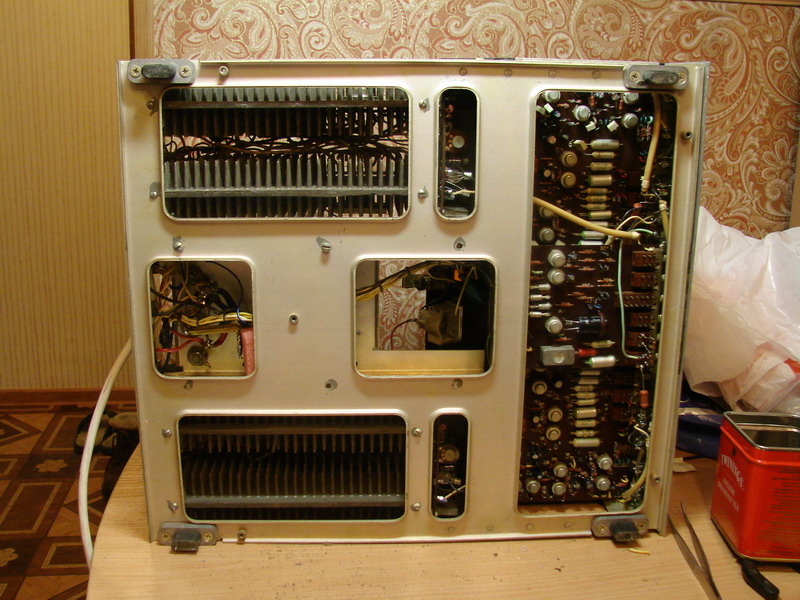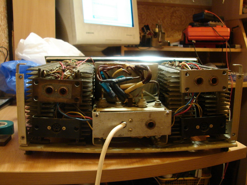 Ещё была интересная трембита(не помню номер) 2х80ватт, 4 входа, по габаритам чуть больше кассетника "электроника 301", весом где то в пуда полтора. У неё были такие же характерные игольчатые радиаторы с принудительным обдувом и очень плотный монтаж. Горела регулярно, но пока работала - звук был хорош.